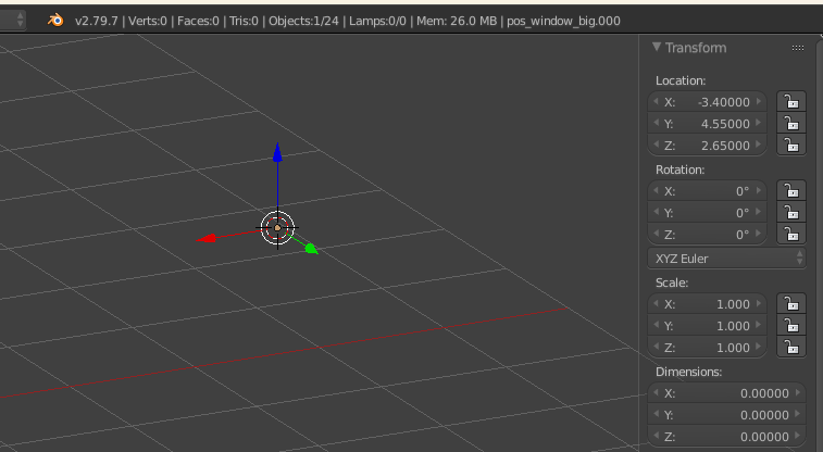 | 1. | Create a mesh at the position 0,0,0 with a scale of 1,1,1. > In my case the window. ![]() |