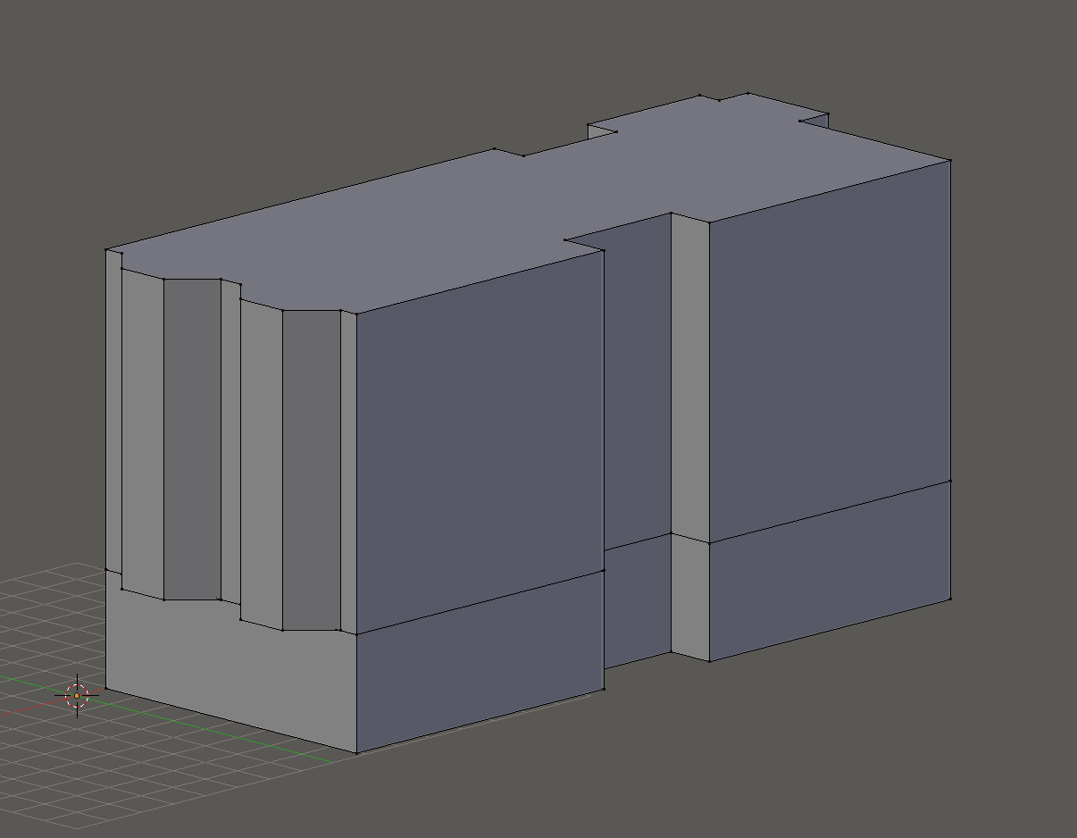 That means we can extrude the "building carpet" we created in the first step by 10 units along the z-axis, resulting in this:
